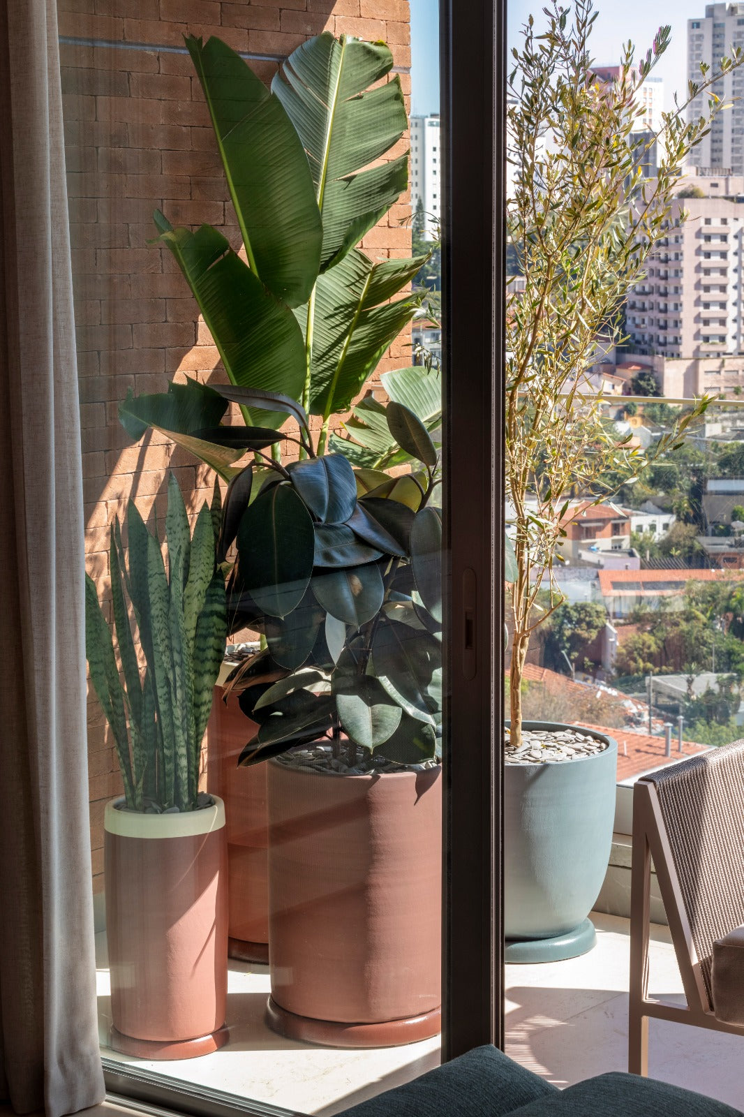 A varanda tinha um diferencial de ser um ambiente muito ensolarado, portanto, as espécies escolhidas precisavam ser de sol pleno, para aguentar esse calor intenso.